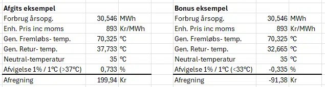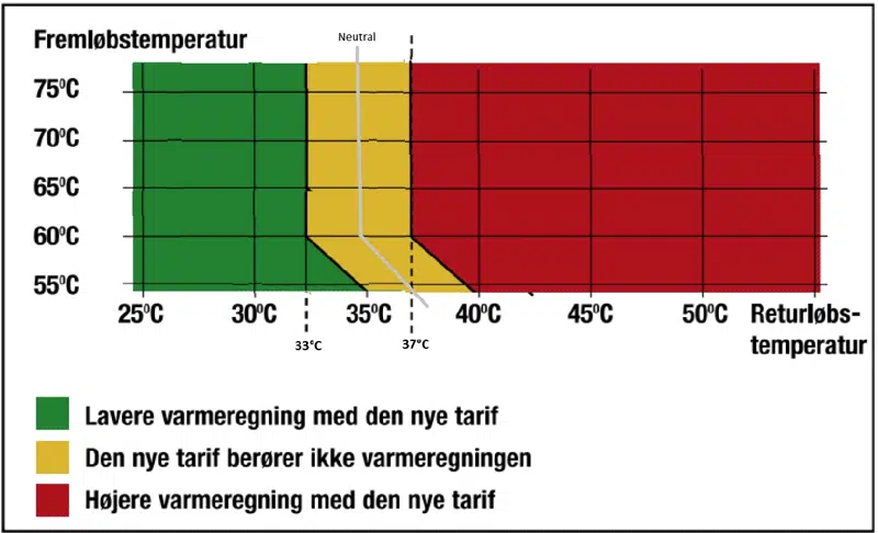 Hvis gennemsnitlig retur-temperatur ligger i Neutral området 33°C .. 37°C afregnes hverken afgift eller bonus